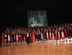 43. dönem mezunları adına konuşan Dr. Berrak Taş ise, uzun bir süre yoğun bir tıp eğitimi aldıklarını hatırlattı ve “Bu eğitim yılları içerisinde kuşkusuz en önemli kazancımız aldığımız tıp eğitimi ve bu süreçte kendimizi tanımamız olmuştur. Bunu bize sağlayan hocalarımıza, bize her daim maddi manevi destek veren ailelerimize teşekkür ediyoruz” dedi.