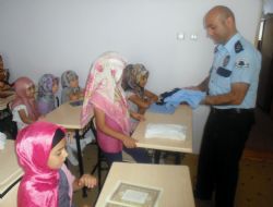Tortum İlçe Emniyet Müdürlüğü Yaz Kuran kursuna gelen çocuklara polis armalı tişört hediye etti.