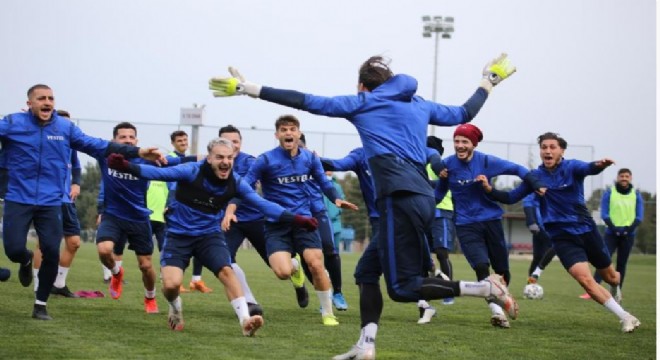 Sahasında Aytemiz Alanyaspor'a 3-1 mağlup olmasıyla zirve yarışında yara alan Trabzonspor'un bugünkü antrenmanı neşeli geçti. Oyuncuların yapılan antrenmanda moralli oldukları gözlenirken, kaleci Erce Kardeşler'in takımı Arda'nın takımını penaltı sonuçları sonrasında yenmesiyle Ekuban, Marlon, Flavio, Abdulkadir Parmak, Hosseini, Yusuf Sarı, Sefa Kınal ve Hüseyin Türkmen galibiyet pozu verdi.