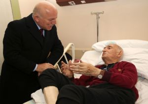 Erzurum Büyükşehir Belediye Başkanı Mehmet Sekmen, Türk Kızılayı Doğu Anadolu Bölge Başkanı Mithat Turgutcan’ı tedavi gördüğü hastanede ziyaret etti. Büyükşehir Belediyesi Genel Sekreteri Ali Rıza Kiremitci ile birlikte Turgutcan’a geçmiş olsun dileklerini ileten Başkan Sekmen, “Mithat ağabeyi, Erzurum’un mihenk ve köşe taşıdır. Kendisi Erzurum’un yaşayan tarihidir, gönül adamıdır. Türk Kızılayı bu güzel şahsiyetle adeta bütünleşmiştir. Değerli büyüğümüzün eski sağlığına kavuşması için Yüce Allah’a dua ediyoruz” dedi. Ziyaretten duyduğu memnuniyeti ifade eden Turgutcan da, “Büyükşehir Belediye Başkanımız Mehmet Sekmen Beyefendi’nin yükümlülüğü çok. Ben Reis Bey’in ne kadar yoğun çalıştığını bizatihi biliyorum. Bu meşguliyetin arasında zatı âlime zaman ayırdığı için kendisine çok müteşekkirim. Reis Bey, Türk Kızılayı ve eğitim yuvalarımıza çok büyük ehemmiyet veriyor. Çalışmalarını yakinen takip ediyorum. Başkanımız yurtlarımızın tadilatını üstlendi ve bizleri de ziyadesiyle mutlu etti” diye konuştu.