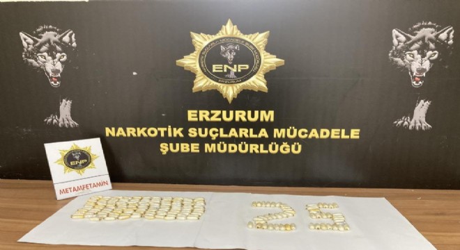 Erzurum Emniyet Müdürlüğü Narkotik Suçlarla Mücadele Şube Müdürlüğü ekiplerince gerçekleştirilen operasyonda 175 kapsül halinde 1 kilo 178,55 gram metamfetamin maddesi yakalandı.