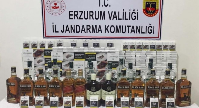 Erzurum İl Jandarma Komutanlığı unsurlarınca kaçakçılıkla mücadele kapsamında Uzundere ilçesinde yapılan kontrollerde, Artvin’den Erzurum istikametine gitmekte olan 3 şüpheli şahsın içerisinde bulundukları aracın bagaj kısmında valiz ve karton kutular içerisinde 102 şişe (102 litre) kaçak alkollü içki ve 50 karton (500 paket) kaçak sigara ele geçirildi.