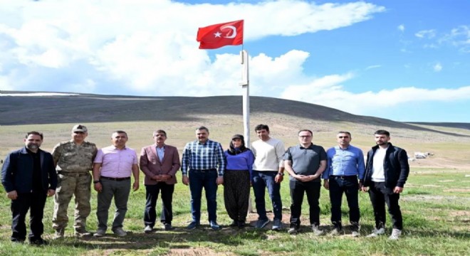 Oltu'nun Sitare Dağı'na şehit öğretmenler için diktikleri bayrak direğinin ...
