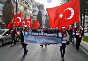 Aydın'ın Efeler ilçesindeki Atatürk Kapalı Spor Salonu'nda saat 10:00'da başlayan Sarıkamış Şehitleri Anma Yürüyüşü'ne soğuğa rağmen çok sayıda katılım oldu. Yürüyüşe Aydın Gençlik Hizmetleri ve Spor İl Müdürü Bekir Çeker, Aydın İl Müftüsü Ömer Kocaoğul, AK Parti Aydın İl Başkanı Ömer Özmen, AK Parti Efeler İlçe Başkanı Aytaç Arslan, AK Parti Aydın Gençlik Kolları İl Başkanı Mustafa Enes Yıldız, Gençlik Hizmetleri ve Spor şube müdür ve personelleri ile çok sayıda öğrenci ve vatandaş katıldı. Aydın Gençlik Hizmetleri ve Spor İl Müdürlüğü tarafından dağıtılan kırmızı-beyaz; atkı, eldiven ve berelerin takıldığı yürüyüşte katılımcılar 'Şehitler ölmez vatan bölünmez' 'Bir destandır Sarıkamış' şeklinde sloganlar attı.