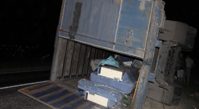 İspir İlçesinde virajı almayan tır yan yattı. Kazada araçta sıkışan sürücü kendi imkanlarıyla dışarı çıkmayı başardı.