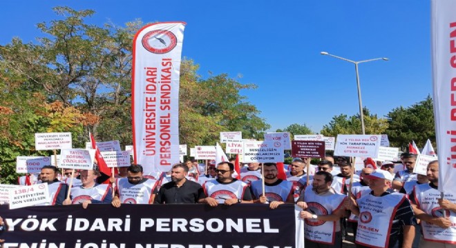 Üniversite İdari Personel Sendikası (ÜNİPERSEN), üniversitelerde çalışan idari personelin yaşadığı sorunların çözüme kavuşturulması talebiyle Yükseköğretim Kurulu (YÖK) Başkanlığı önünde basın açıklaması yaptı.
