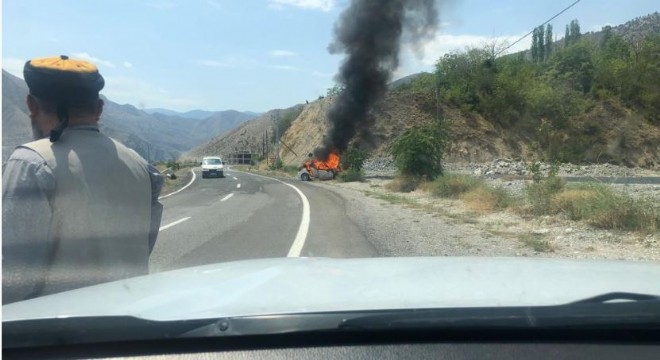 Erzurum-Artvin karayolunda yaşanan kaza sonrası alev topuna dönen otomobil korku dolu anlar yaşattı.
