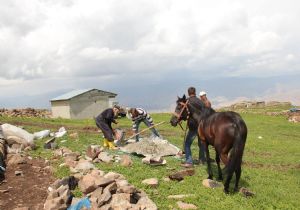 Şenkaya’nın Gözalan Köyü’nde vatandaşlar Basgut yaylasında yayla evlerini tamir etmeye başladılar.