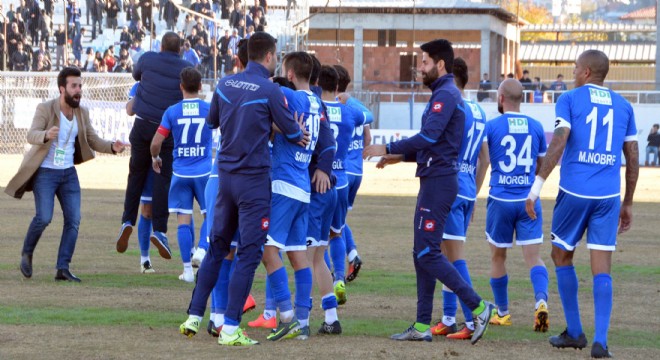 Erzurumpor, Fethiyespor karşısında maçın uzatma dakikalarında Mehmet Albayrak'ın kaydettiği gol ile liderliğe yükselmenin sevincini yaşıyor.