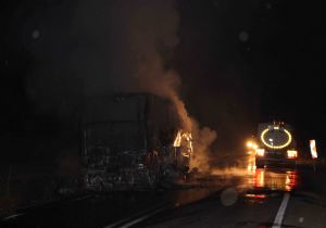 Bingöl'ün Karlıova ilçesinde, yol kenarına terk edilen bir otobüs, henüz belirlenemeyen bir nedenden dolayı yandı.