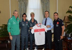 Ziyaretin sonunda takım Kaptanı Esra Erol, Vali Altıparmak’a milli formayı hediye etti.