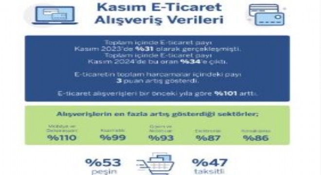 Garanti BBVA’nın alışveriş ayı Kasım’a ait kredi kartı harcama verilerine göre, Kasım ayında e-ticaret alışverişleri geçen yıla göre yüzde 101 arttı.