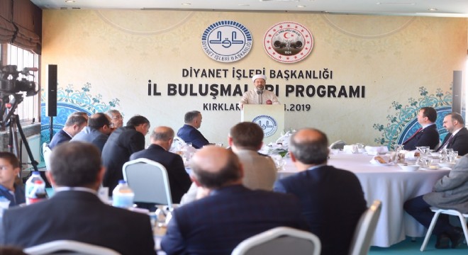 Diyanet İşleri Başkanı Prof. Dr. Ali Erbaş, Kırklareli’nde çeşitli sivil toplum kuruluşları temsilcileri ve kanaat önderleri ile bir araya geldiği programda, “Gücümüzü kaybetmemek için birlik, beraberlik içerisinde hareket etmek zorundayız” dedi. Diyanet İşleri Başkanı Ali Erbaş, Kırklareli’nde çeşitli sivil toplum kuruluşları temsilcileri ve kanaat önderleriyle bir araya geldi. Diyanet İşleri Başkanlığının dünyada benzeri olmayan bir teşkilat olduğunu ifade eden Erbaş, “Bugün Diyanet İşleri Başkanlığı din hizmetleri ve din eğitimi alanında ahlak, ibadet ve inanç konularında toplumu aydınlatma vazifesi kanunla kendisine verilmiş çok önemli bir teşkilat olarak bugün çok büyük hizmetleri yerine getirmeye çalışmaktadır” dedi.
