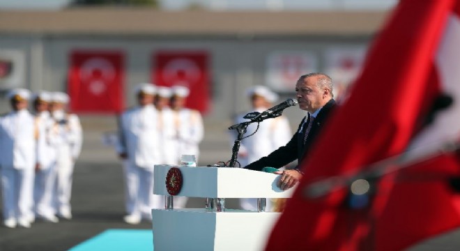 Korvetlerimiz bugüne kadar milli ve uluslararası birçok tatbikatta yer alarak kendilerine verilen görevleri başarıyla yerine getirdi. Deniz Kuvvetlerimizi güçlendirmeye yönelik daha pek çok projemiz var. Ülkemiz ile dost ve kardeş devletlerin ihtiyaçlarını karşılayacak dizel elektrikli denizaltı projesiyle ilgili çalışmalar da sürüyor. İzmir Tersanesi'nin Deniz Kuvvetlerimize daha iyi hizmet verebilmesi için altyapı ve yüzer havuzlarla güçlendiriyoruz. İlk yüzer havuzu önümüzdeki Kasım ayında hizmete alıyoruz. Gemi makinalarından deniz toplarına, füzelere, torpidolara, elektronik sistemlere kadar her alanda yerli ve milli imkanları en üst seviyeye çıkarmakta kararlıyız. Türkiye'nin savunma sanayi alanında son dönemde katettiği mesafe istiklaline ve istikbaline daha güvenli bakmasını sağlamıştır. Geçmişte arzu ettiğimiz gemileri, uçakları, araç gereçleri paramızla dahi alamadığımızı asla unutmadık, unutmayacağız" dedi.