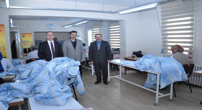 Pasinler Kaymakamlığına atanan Harun Ersin Polat, SODES tarafından desteklenen giyim atölyesinde incelemelerde bulundu.