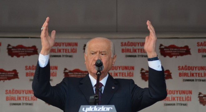 Osmaniye il merkezinde ve Kadirli ilçesinde siyasi nezaket ve fedakarlık göstererek aday çıkarmayan AK Parti'ye teşekkür eden MHP Lideri Bahçeli, "31 Mart Yerel Seçimleri Türkiye'nin yeni hükümet sistemi kapsamında en önemli demokrasi imtihanıdır. Bu nedenle Osmaniyeli kardeşlerimden ricam, mutlaka sandığa gitmeleridir. Ülkemizin her yanını terör örgütleri sarmış. Her taşın altı fitne, her yer vahşet. Hedef ülke, Türkiye'dir. Vandal hesaplar Türk milletinin bölünmesi üzerine kurulmuştur. Amerika Birleşik Devletleri Başkanı Donald Trump'ın, Golan Tepeleri'nin sözde İsrail toprağı olarak tanıyan çürük imzası, terör örgütlerine verdiği desteği, Türkiye'nin nasıl bir kuşatma altında olduğunu göstermektedir. Türkiye'den yeni bir Irak çıkarma planlarında yaygınlık vardır. Sevr ile başaramayanlar, şanslarını yeniden deniyor. PKK'yı, FETÖ'yü kullanıyorlar, Türkiye'ye namlu doğrultuyorlar. En çok şehit veren Osmaniye, ihanetin nasıl bir kötülük olduğunu bilir" diye konuştu.