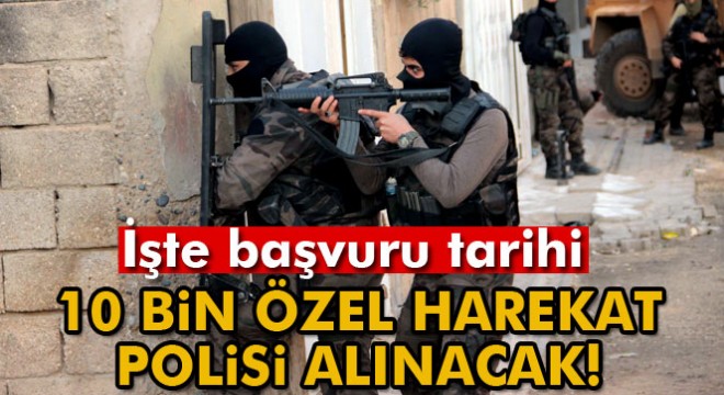 Polis Akademisine bağlı Polis Meslek Eğitim Merkezlerine özel harekat polisi yetiştirmek üzere ve 28 yaşından gün almamış olan en az lise veya dengi okul mezunlarından 10 bin erkek öğrenci adayı alınacak.