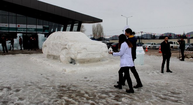 Atatürk Üniversitesi Güzel Sanatlar Fakültesi Heykel Bölümü Dr. Öğretim Üyesi Caner Şengünel, zorlu ve yorucu bir çalışma olduğunu ifade ederek, “Bizler DAKAF20’ye kendi alanımızdan bir ürünle dahil olmak istedik. Yaklaşık 15-20 gün devam eden ön çalışmaların ardından yerli ve milli otomobilimizin heykelini yapmaya karar verdik. Yaklaşık 25 kişilik bir ekip kurduk. Ekibin içinde öğrenciler ve akademisyenler yer aldı. 5 gün boyunca geceli gündüzlü çalışarak yapımını tamamladık. Yorucu bir süreç geçirdik. İlk başta buzdan yapmaya karar verdik ancak buzun sıcak havaya dayanamayacağını düşünerek yaklaşık 10 kamyon kar getirerek buzun üzerini karla kapladık” dedi.