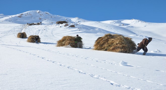Dağdan hayvanları için ot indiren Rıfat Keği, yazın dağlarda ot biçtiklerini ifade ederek, “Yazın sıcağında bu otları biçiyoruz. Kışın da zorluklarla bu otları köye götürmek zorundayız. Metrelerce kar kalınlığına rağmen dakikalarca yokuş çıkıyoruz. Her gün birinin otunu taşımak için geliyoruz. Birbirimize yardım ederek, ancak bitiriyoruz” dedi.