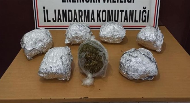 Erzincan İl Jandarma Komutanlığı ekiplerince yolcu otobüsünde seyahat eden bir kişinin eşyaları arasında 4 kilo 34 gram kubar esrar ele geçirildi.