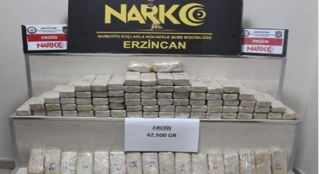 Erzincan'da, Almanya plakalı bir otomobilde 92 paket halinde 42 kilo 500 gram eroin ele geçirildi.