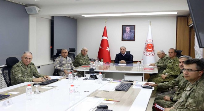Milli Savunma Bakanı Hulusi Akar, beraberinde Genelkurmay Başkanı Orgeneral Yaşar Güler, Kara Kuvvetleri Komutanı Orgeneral Musa Avsever, Deniz Kuvvetleri Komutanı Oramiral Ercüment Tatlıoğlu ve Hava Kuvvetleri Komutanı Orgeneral Atilla Gülan ile Hakkari'de sınır birliklerindeki inceleme ve denetlemelerinin ardından 3’üncü Piyade Tümen Komutanlığı'na geçti. Harekat Merkezi'nde Irak’ın kuzeyindeki Zap bölgesinde gerçekleştirilen Pençe-Kilit Operasyonu’na katılan birliklerin komutanları ile video konferans üzerinden toplantı yapan Bakan Akar, sahadaki son duruma ilişkin bilgi aldı, talimatlar verdi. Terörü kaynağında kurutmak esasıyla artan bir şiddet ve tempoda taarruzi bir anlayışla teröristle mücadelenin devam ettiğini vurgulayan Bakan Akar, “İnşallah sizin yaptıklarınızla, çalışmalarınızla, Mehmetçiğin alın teriyle asil milletimizi 40 yıldır başına musallat olan terör belasından kurtaracağız. Bu konuda azimliyiz, kararlıyız ve buna da muktediriz. En son terörist etkisiz hale getirilinceye kadar mücadelemiz devam edecek” diye konuştu.
