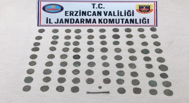 Erzincan İl Jandarma Komutanlığı’nca yapılan operasyonda, tarihi özelliği olduğu değerlendirilen 89 adet sikke ve 1 adet obje ele geçirildi.