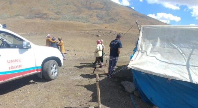 Olay, Tuzluca ilçesine bağlı Sarıbulak köyünün 2 bin rakımlı Temir Yaylası'nda meydana geldi. Edinilen bilgiye göre, rahatsızlanan Kudret Sönmez'in (62) yakınları, 112 Acil Servis ekiplerini arayarak yardım istedi. Yaylaya giden sağlık ekipleri araziden dolayı hastaya ulaşamadı. Bunun üzerine UMKE ile AFAD'dan destek istendi. 4 saat süren çalışma sonucu yayladan indirilen Sönmez, Sarıbulak köyünde bekleyen sağlık ekiplerine teslim edildi. 112 Acil Servis ekiplerince Iğdır Devlet Hastanesine kaldırılan Sönmez'in sağlık durumunun iyi olduğu öğrenildi.