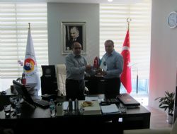 Ziyarette ASİMDER Başkanı Gülbey, ITSO Başkanı Kamil Arslan’a Türkiye, Azerbaycan ve derneğin masa bayraklarını hediye etti.