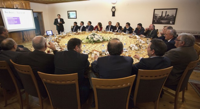 Erzurumlu esnaf, iş adamları ve sanayicilerini temsilen yöneticilerin de yer aldığı toplantıda, şehrin ekonomik, sosyal, kültürel ve iktisadi yapısı ve gelişimi ele alındı.