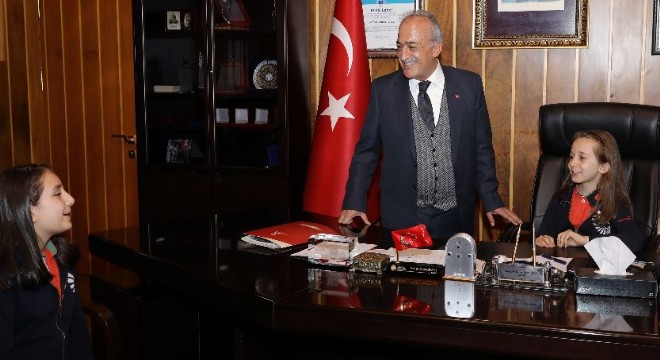 Ulu önder Mustafa Kemal Atatürk’ün dünya çocuklarına armağan ettiği 23 Nisan Ulusal Egemenlik ve Çocuk Bayramı’nda, Atatürk Üniversitesi Rektörü Prof. Dr. Ömer Çomaklı, koltuğunu Vakıf Okulları İlkokul öğrencileri Zeynep Mavi ve Zeynep Tufançlı’ya bıraktı.