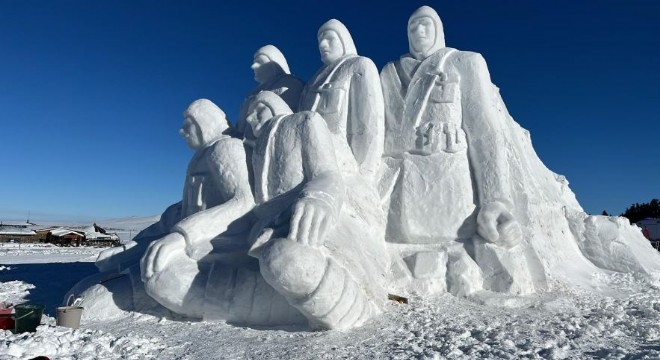 Sarıkamış'ta kardan heykellerin yapımı tamamlandı