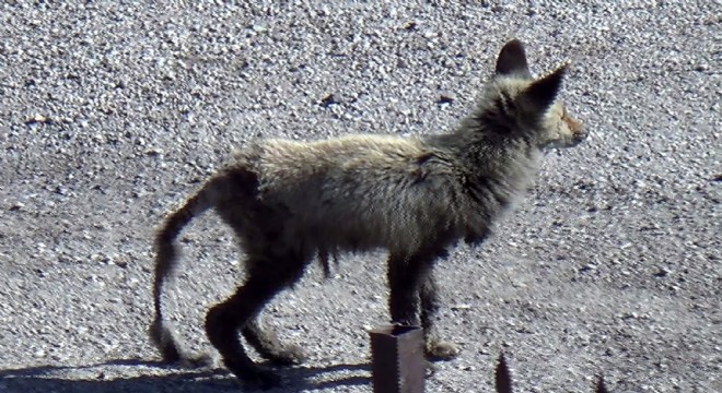 Erzurum’un Palandöken ilçesinde sabah saatlerinde apartmanın ön tarafında yavru tilkiyi gören vatandaşlar şaşırdı. Aç kaldığı için Palandöken Dağından yerleşim alanına inen yavru tilki kendine yiyecek aradı. Köpeklerin saldırısına uğradığı tahmin edilen ve yaralı, bitkin halde dolaşan tilki, vatandaş kamerası tarafından görüntülendi.