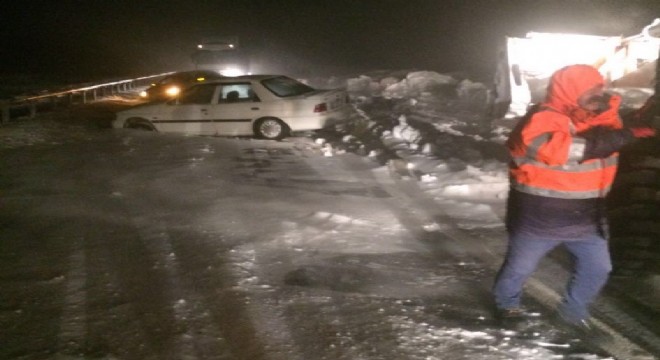 Van-Ağrı karayolu dün gece yoğun kar ve tipi nedeniyle kapanan yolda mahsur ...