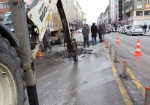 ERZURUM (İHA) - Erzurum’da araç trafiğinin en yoğun olduğu Cumhuriyet Caddesinde, soğuklar nedeniyle yolun altından geçen su boruları patladı. Bir süre sonra ise yolun ortasından su çıkmaya başladı.