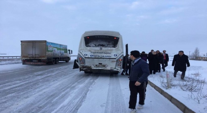 Edinilen bilgilere göre, Aşkale’nin Çayköy mevkiinde seyir halinde olan Fatih Akbulut önüne çıkan köpeğe çarpmamak için ani fren yapması sonucu, Hüseyin Uruk idaresindeki Aşkale Özel Halk Otobüsüne arkadan çarptı. Kaza da otomobil içerisinde Fatih Akbulut ve Serdar Çelik yaralandı.