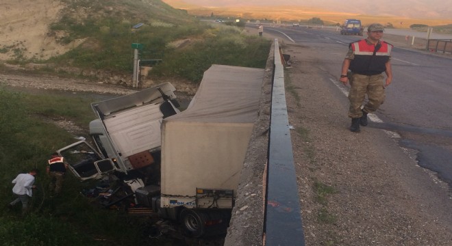 Kaza, dün akşam Erzurum-Aşkale karayolu Koşapınar Mahallesi yol ayrımında meydana geldi. Alınan bilgiye göre, Necdet Arıkan idaresindeki 76 DN 442 plakalı tır, virajda sürücünün direksiyon hakimiyetini kaybetmesi sonucu yaklaşık 10 metre yükseklikteki köprüden aşağı uçtu. Kazada yaralanan Arıkan, ambulansla Erzurum Bölge Eğitim ve Araştırma Hastanesine kaldırılarak tedavi altına alındı. Kaza mahallinde jandarma ekipleri incelemede bulundu.