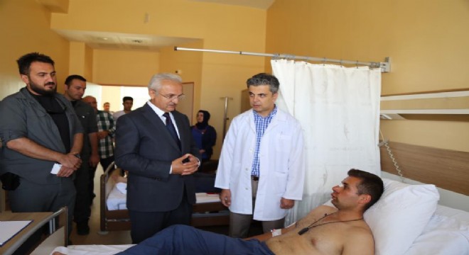 Erzincan Belediye Başkanı Cemalettin Başsoy, dün Erzincan'da teröristlerce yola tuzaklanan bombanın patlatılması sonucu yaralanan 3 askeri hastanede ziyaret etti.