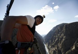 COŞKUN MENEK -ERZİNCAN (İHA) - Erzincan’ın Kemaliye ilçesindeki Karanlık Kanyon’da Türkiye’de ilk kez Rope Jump((Halatlı atlayış) atlayışları yapıldı. Kemaliye’li sporcu Alper Atmaca(24) 480 metre yükseklikten atlayış yapan ilk Türk sporcu olurken, 265 metre halatta salınarak Türkiye ve dünya rekoru kırdı.