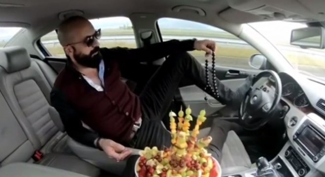 Erzurum’da otomobille seyir halindeyken ayağıyla direksiyonu çevirip yanında kocaman meyve tabağı, elinde tespihle poz veren sürücü 'trafik güvenliğini tehlikeye sokma' suçundan 5 ay hapis cezasına çarptırıldı.
