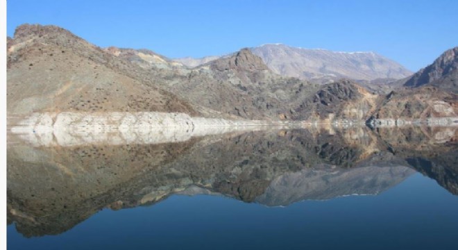 Oltu ilçesindeki Ayvalı Barajı'nda berrak suya dağların yansıması kartpostallık görüntüler oluşturdu.