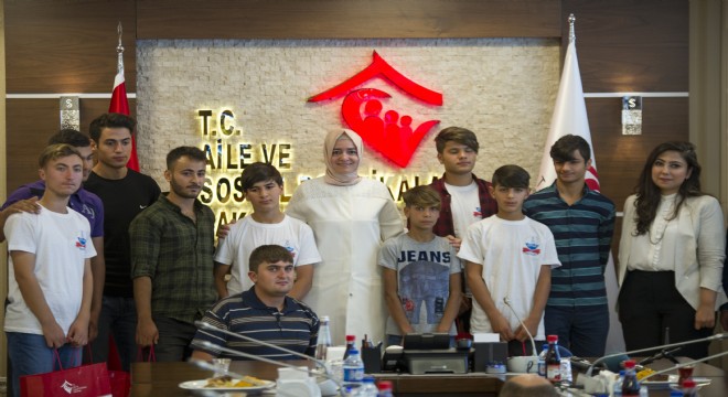 Aile ve Sosyal Politikalar Bakanı Kaya, Bakanlığa bağlı Erzurum Çocuk Evleri’nden gelen öğrenciler ile bir araya geldi. Aile ve Sosyal Politikalar Bakanlığında gerçekleşen kabulde öğrenciler ile tek tek ilgilenen Bakan Kaya, ev modelinin önemine dikkat çekti. Çocukların, ev modeli ile daha düzenli bir ortamda yetişeceğini ve derslerine çalışacağını kaydeden Kaya, “Önünüzde çok güzel örnekler var. Her türlü ortamı biz sağlayacağız ve siz de çalışıp, gayret edip hayallerinize kavuşacaksınız. Bizim için en büyük mutluluk sizlerin hayallerinize kavuşabilmeniz. Bizim için ev modeli çok önemli. Sizlere daha güzel imkanlar sunacağız evlerde ve gelecek hayallerinize ulaşmanız için daha sağlıklı bir ortam olacak. Üniversite sınavlarında çok başarılı olan öğrencilerimiz var. Sizlere motivasyon olsun diye paylaşmak istiyorum. LYS’de başarılı olan 60 çocuğumuzu Saraybosna’ya götürüyoruz. Sizler de çok çalışıp, çok gayret edip hayallerinize ulaşın” ifadelerini kullandı.