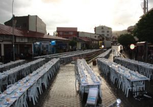 İftara katılan vatandaşlar ise sefer taslarıyla iftar yemeklerini evlerine götürdüler. Yağmur iki saat boyunca aralıksız devam edince açık havada yapılacak olan iftar yemek programı iptal edildi.