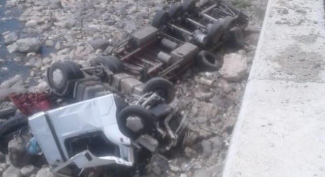 Bingöl’de bir tırın dereye yuvarlanması sonucu sürücü ağır yaralandı.