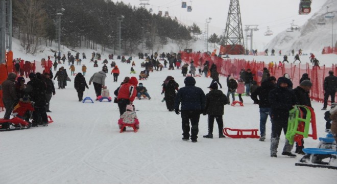 Palandöken Kayak Merkezi'nde sömestr tatilini fırsat bilen yerli ve yabancı binlerce turist, hafta sonunda kar yağışı altında kayak ve kızağın keyfini çıkarttı.