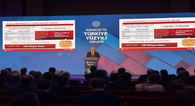 Hizmet ihracatında da son yıllarda ciddi artış olduğuna dikkat çeken Bakan Bolat, ''Hizmet ihracatımız son 20 yılda ciddi oranda yükseldi. Hizmet ihracatımızda 2002 yılındaki 14 milyar dolarlık düzeyden başlayarak, 2023 yılını 100 milyar dolar gibi iftiharlık bir rakamla kapattık. 2024 yılında da istikrarlı yükselişimiz hız kesmeden devam edecek ve 110 milyar dolarlık, 2028 yılında ise 200 milyar dolarlık hedefe ulaşmak için çalışmalarımızı sürdürüyoruz. Hizmetler kalemi içinde bu anlamda müteahhitlik kaleminde geçen yıl 28 milyar dolarlık gelir kalemimiz oldu. Dizi film ihracatında yaklaşık 600 milyon dolarlık gelirimiz oldu. Yarım milyon doları aştı müteahhitlerimizin dünyada kazandığı projeler’’ diye konuştu.