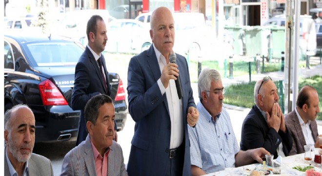 Pelit Meydanı’nda kurulan birlik sofrasında esnafla kahvaltıda bir araya gelen Başkan Sekmen, işletme sahiplerini tek tek dinleyerek, problemleri not alıyor. AK Parti Erzurum İl Başkanı Mehmet Emin Öz’ün de katıldığı “Esnaf Buluşmaları” toplantılarının önemine vurgu yapan Başkan Sekmen, bu toplantılar sayesinde şehrin ticari hacmini etkileyen sorunların da belirlendiğine dikkati çekti.