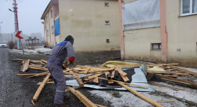 Çat ilçesinde etkili olan şiddetli rüzgar ve fırtına çok sayıda binanın çatısının uçmasına neden oldu.