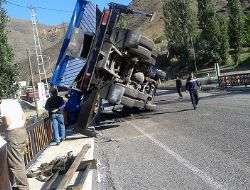 Çekici de devrildi