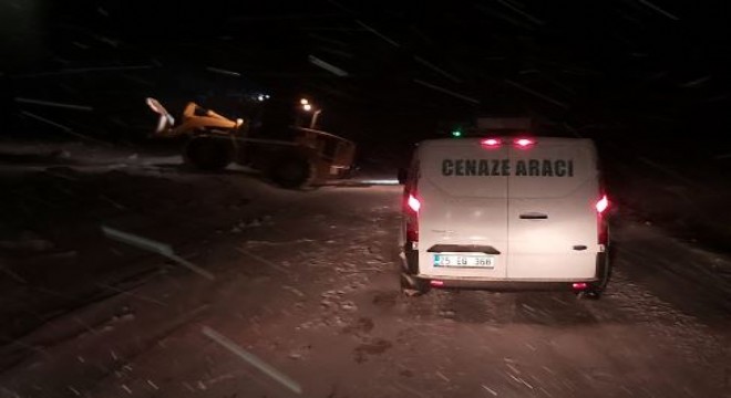 Yoğun fırtına nedeniyle zor anlar yaşayan kırsal hizmetler ekibi her türlü zorluğu göze alarak cenaze aracını ve cenaze ile beraber gelen vatandaşları yolda bırakmadı.